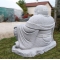 Height 60 cm. Width: +-70 cm, depth +-40 cm. Weight 250 kilograms. This solid granite Buddha statue will transform any outdoor space into a Zen meditation garden or peaceful sanctuary. He is seated in full lotus position and his right hand is extended towards the ground, referring to when the Buddha asked mother earth to witness his enlightenment. The face has a serene expression, framed by long earlobes, and robes hang over his left shoulder. The sculptor’s tool marks are visible on the hand-carved piece (unlike sculptures made for the mass-market).