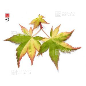 Small leaves, slightly twisted, first orange when the buds burst and then green variegated with pinkish orange and/or yellow. Green leaves and variegated new shoots in summer. Reddish orange in autumn. Real name miyabi nishiki but often known as ryumon nishiki in Japan.
