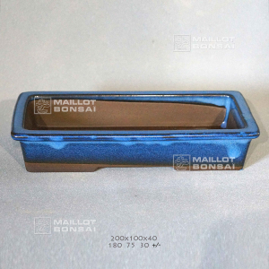 Dimensions intérieures : 180*75*30 mm. Coloris bleu marine. Voici des pots, mais pas n'importe quels pots. Bonne qualité, nombreux orifices de drainages, grès non gélif, cuisson à haute température. Fabrication artisanale et soignée a Nagoya Yokaiichi Japon.