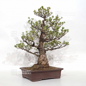 Hauteur de l'arbre : 700 mm. Largeur de 550 mm. Poterie artisanale chinoise ancienne non émaillée coloris brun de :410*320*110 mm. Style moyogi tronc sinueux. Sujet âgé de plus de 50 ans, issu de semis avec ses plateaux formés et sa très belle écorce Ø de tronc +- 130 mm. Nebari de :190-200 mm. Jin sur le tronc réalisé en mars 2022.