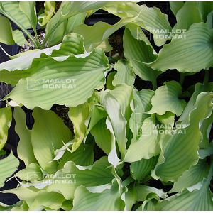 Issu de l'hybridation de maekawa et halcyon. Feuilles étroites sur de longs pétioles, d'un vert bleuté devenant foncé à maturité. Hauteur : 67 cm par +- 120 cm de largeur. Feuilles de +- 32 cm de longueur et 16 de largeur. Floraison de la mi-août a la mi-septembre bleu lavande sur une longue hampe florale. Gros rhizome livré en conteneur plastique de 1 litre.