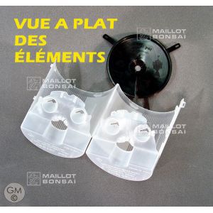 Astucieux contenant en matière plastique renforcé avec ouverture latérale et système de réserve d'eau. Ce pot permet de réaliser facilement des marcottes sur tous végétaux arbres et arbustes soit pour la réalisation de bonsai ou simplement pour la multiplication de vos végétaux difficile à semer ou bouturer. Notice explicative en français jointe au colis. Hauteur 100 mm, Ø 80 mm. Pour des troncs de 7 a 15 mm de diamètre. Pratiquez une décortication annulaire et y placer le rooter pot avec un mélange de sphaigne ou sphaigne et terre akadama fermez le pot par les crochets et placer le couvercle qui favorise la récupération de l'eau de pluie de par sa forme en entonnoir. Une réserve d'eau au fond du pot assure une hydratation suffisante du substrat. Pot économique car réutilisable. Le temps de développement des racines variera selon l'espèce choisie de 1 à 3 mois. Après développement des racines coupez au sécateur sous le pot et transplanter votre marcotte dans un pot de culture en prenant soin de haubaner marcotte et pot pour permettre une croissance des racines sans les casser par les intempéries. Voir le diaporama explicatif.