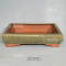 Dimensions intérieures : 170*135*35 mm. Coloris vert kaki nuancé. Voici des pots, mais pas n'importe quels pots. Bonne qualité, nombreux orifices de drainages, grès non gélif, cuisson à haute température. Fabrication artisanale et soignée a Nagoya Yokaiichi Japon.