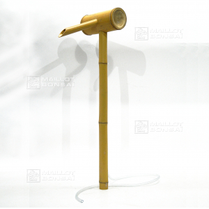 Longueur/ hauteur:+- 800 mm Ø 40  mm. Longueur du bec verseur 210 mm Ø du bec verseur:+-20/25 mm. Longueur de la tété du bec verseur +- 200 mm et diamètre +- 90 mm. Cet article de fabrication artisanale, est utilisé en décoration au dessus des pierres à eau et bassins de granit. Vendu équipé d'un tuyau plastique diamètre +- 10 mm extérieur et 8 mm intérieur véhiculant l'eau jusqu’à son bec. Vendu sans pompe. Voir sur cette boutique différents modèles: www.conrad.fr