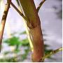 Feuillage vert rosé au printemps, vert foncé en été et orangé rouge en automne. Bois jaune orangé brillant avec des nuances de rouges l'hiver sur les branches des 2 dernières années Croissance rapide. Cette variété porte un bois en hiver d'une teinte plus lumineuse que la variété sango kaki . L'incidence du froid sur cette variété est spectaculaire avec le début de l'hiver le bois se teinte de rouge mais quand les températures sont plus basses le bois devient jaune. Une variété unique en son genre et très originale qui mettra de la couleur dans vos massifs en hiver.